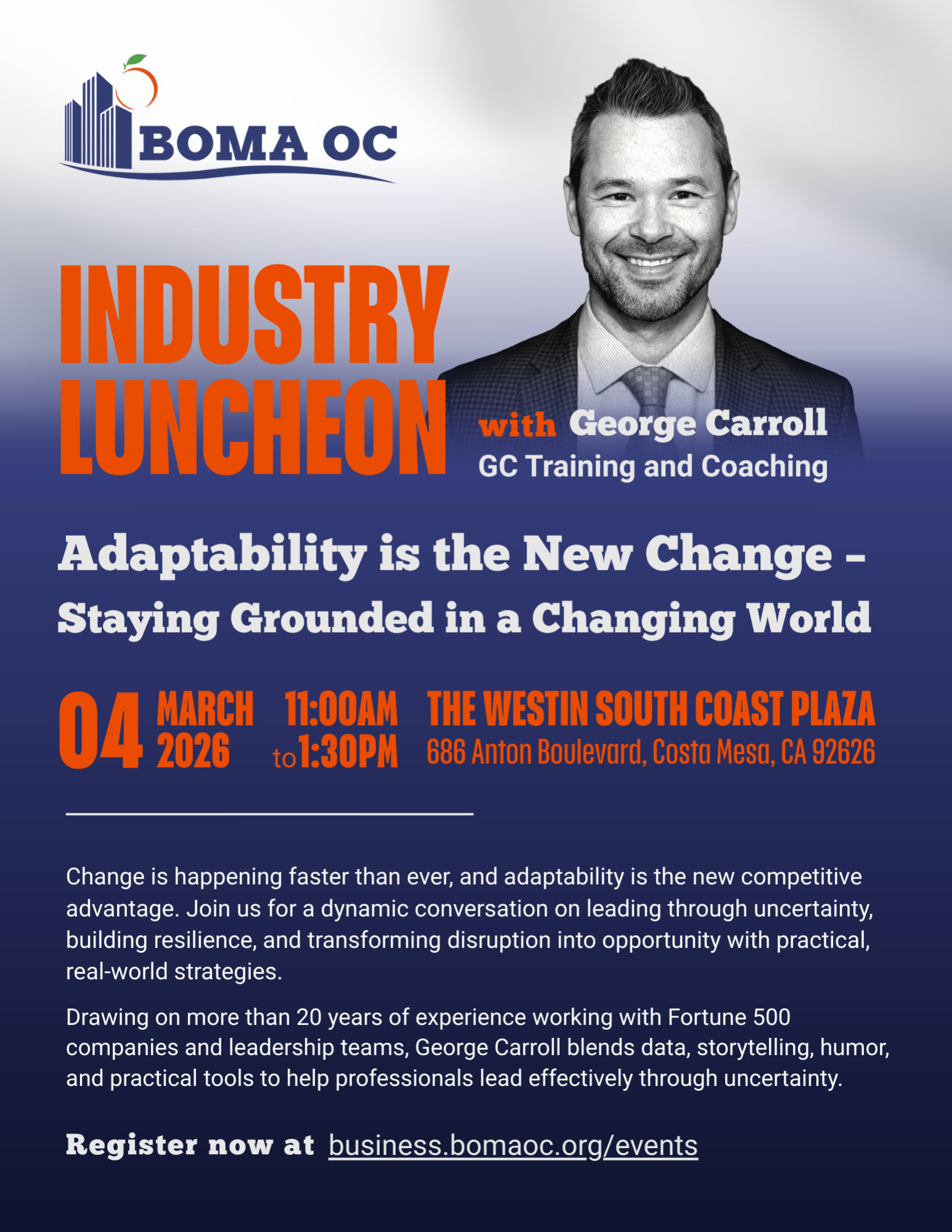 Join BOMA Orange County for a timely and engaging Industry Luncheon focused on navigating change with confidence, clarity, and resilience.